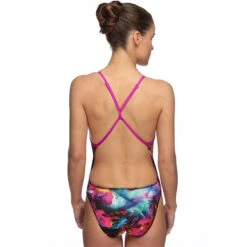 The Maru Girl’s Butterfly Pacer Vision Back Swimsuit features a multicoloured random pattern. Thin purple straps create a V design in the back and are designed to reduce the weight on the neck and shoulders. This swimsuit is perfect for competitive swimmers who are looking for a combination of function and quality.