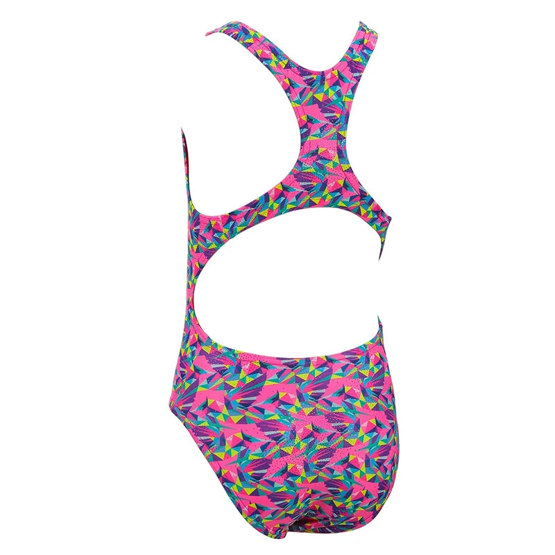 The Maru Girls Hummingbird Sparkle Rave Back Swimsuit is soft and stretchy for comfort with added pink sparkle.
