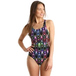 Perfect for training and fitness swimming, the Maru Women’s Lexical Pacer Vault Back Swimsuit features a colorful and eye-catching allover print design. Manufactured from durable, Chlorine resistant Pacer fabric.