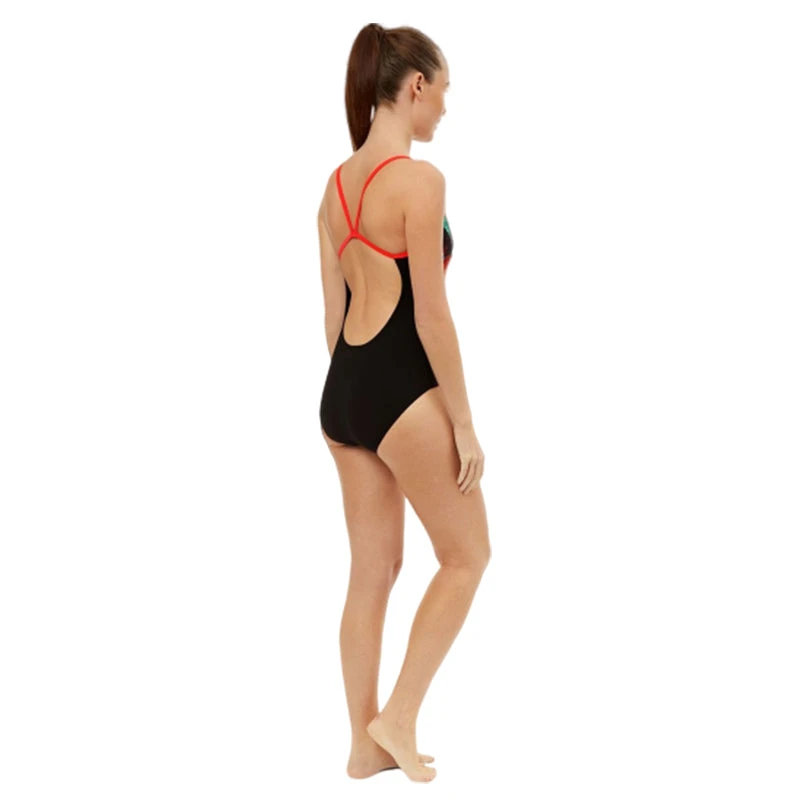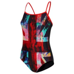The base of the costume is black and the solid black reverse and bright red lining and straps really make it pop. The paint effect pattern on top of the front flag design is in vibrant, neon colours, showing you as anything but ordinary. Our Swift Back offers a classic look but with the freedom and style of a thinner strap. And the regenerated polyester (78%) and LYCRA® XTRA LIFE™ (22%) composition of this suit promises a premium quality. Ready, set, paint! Wait, no, we mean swim!