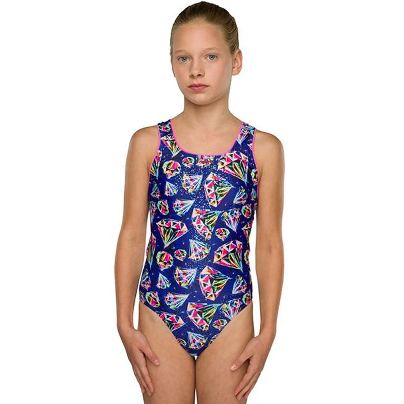 We all know that diamonds are a girl’s best friend and the Razzle Dazzle Sparkle Auto back features a whole host of them! Set against a blue background these diamonds jump out of the print and the aqua sparkle is the perfect finishing touch providing that extra bit of shimmer. Pink piping around the neck, arms and keyhole back are the perfect finishing touch