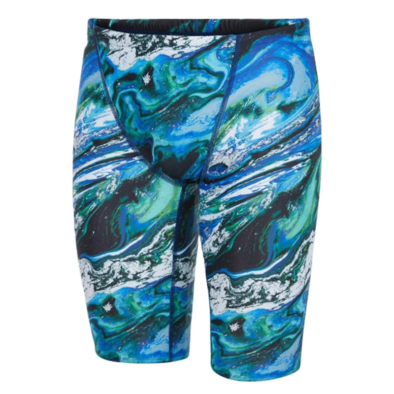 Our Strata Ecotech jammers are made of regenerated polyester (78%) and LYCRA® XTRA LIFE™ (22%). The intricate pattern made up of blues, greens, whites, and blacks remind us of space and water. These jammers feature it as an all-over pattern which will be sure to capture attention and focus. What would we do without technology, eh?