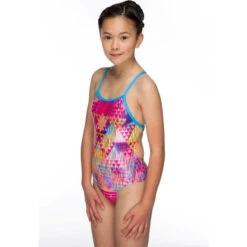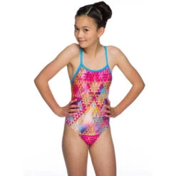 Stand out on the beach or by the pool in the Maru Tri Sparkle Aero back swimsuit – featuring an allover colourful print, open back and thin adjustable straps.