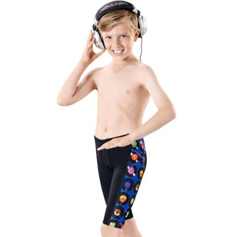 Our old school Vinyl Pacer Panel Jammers are a fun throwback print that will inject fun, retro vibes into any swim session. The drawstring waist offers a secure fit making these jammers ideal for training or leisure swimming. The splash of print along the sides of the Jammers contrasts perfectly with the solid black plain fabric.